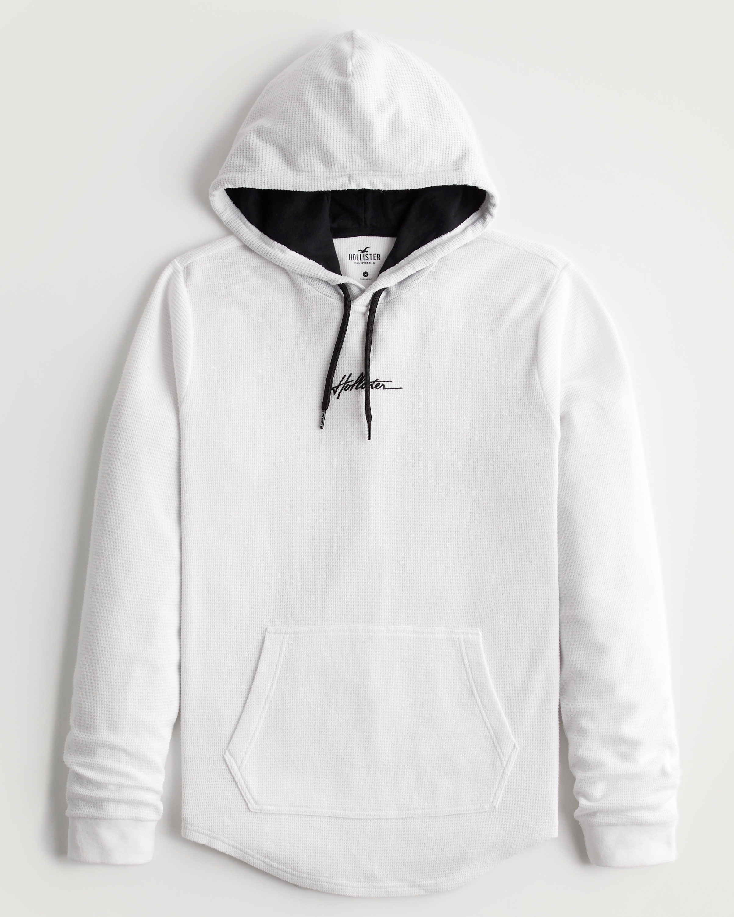 Men's Curved Hem Thermal Hooded T-Shirt in White Size XL from Hollister